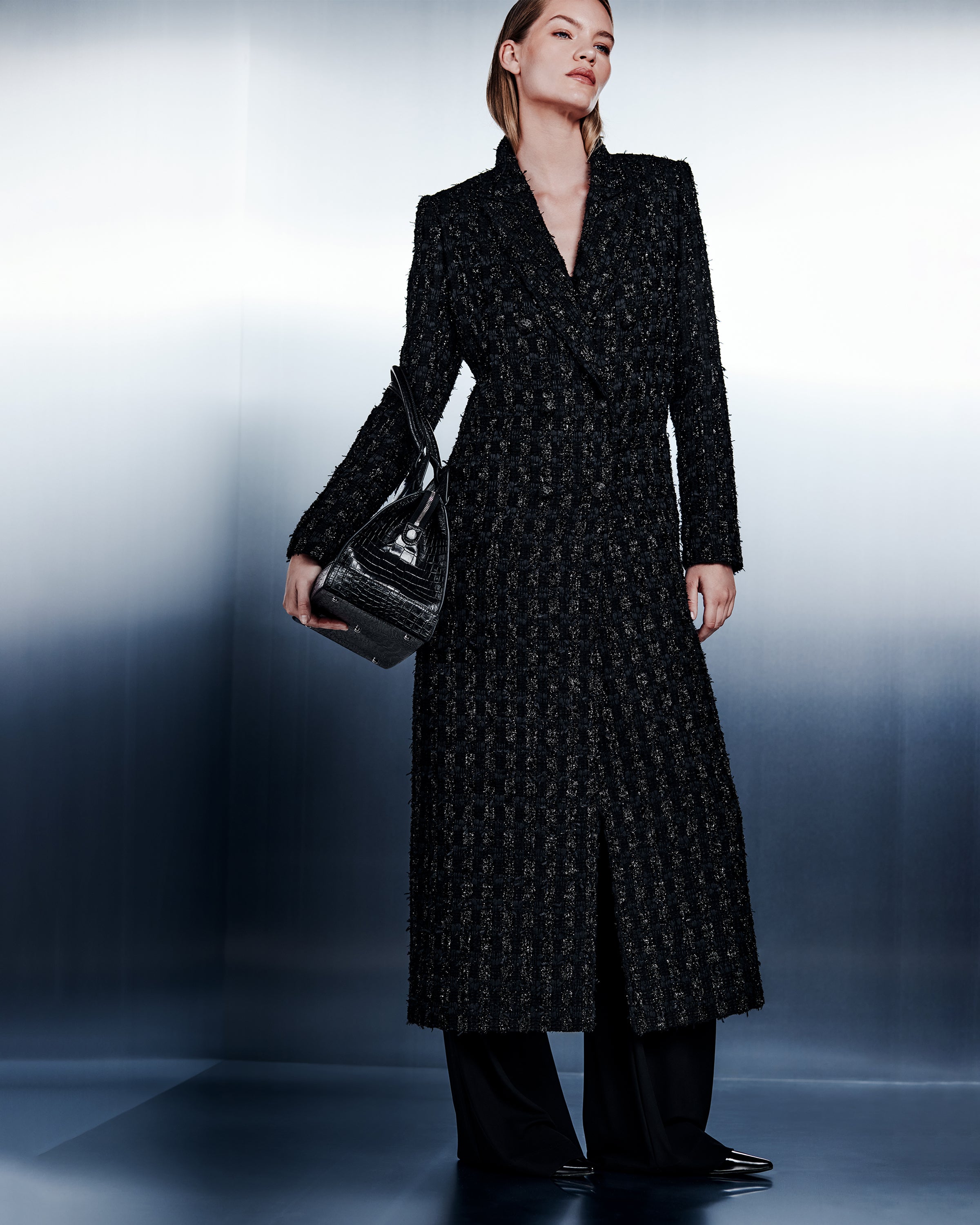 Designed for the season's celebrations, our Festive Edit brings together shimmering silver tweeds, elegant embellishment, and confident silhouettes made for winter evenings.